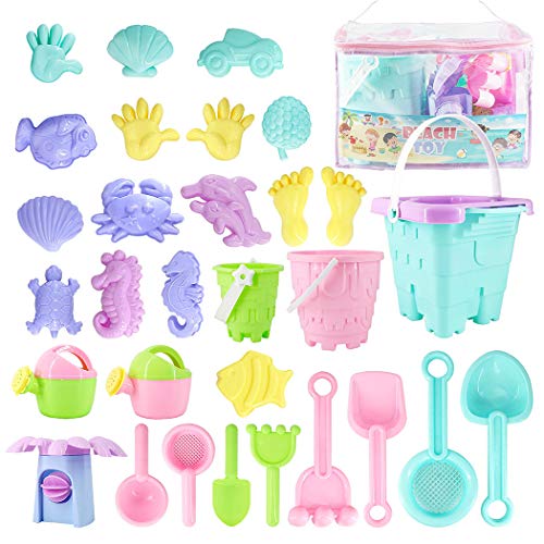 Tagitary Toys Beach Kids Sand Toy Set Beach Bucket Water Wheel Watering Can Shovel Rake Sea Animal Molds And Storage Bag
